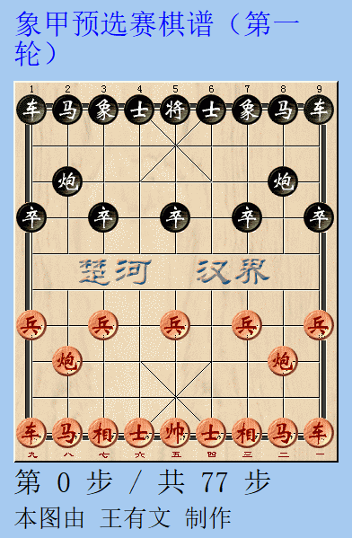 目前,在象甲联赛中使用频率最高的和棋谱有四个,先请欣赏这四盘臭名昭著的和棋谱吧!