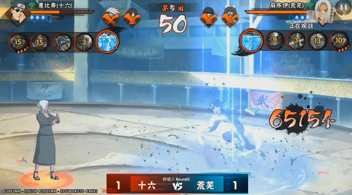 进入到BO3之后,荒芜为了扳回一局直接拿了麻布伊,他手里的麻布伊不仅稳准狠,同时对于拔皇所选忍者也起到了很大的克制作用,最终荒芜凭借麻布伊力压大蛇丸,拿到一分。