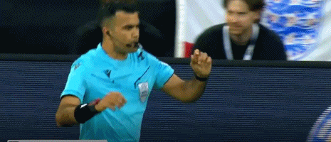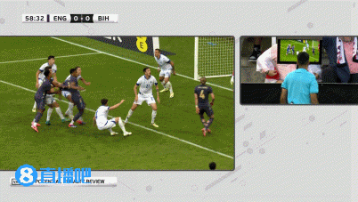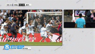 第58分钟,英格兰的角球,卡蒂奇拽倒了孔萨,主裁判到场边亲自观看回放后,判罚点球!