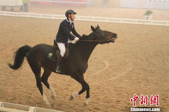 参加盛装舞步预赛骑手闪亮登场。 戚原 摄