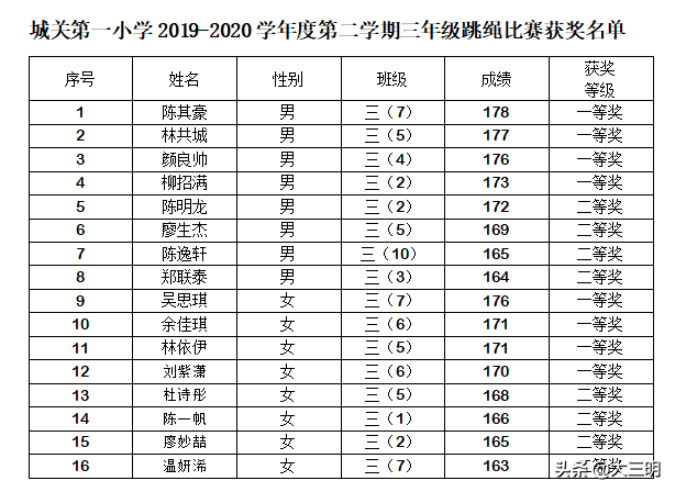 为丰富学生的课余生活,展现学生良好的精神风貌和积极进取的拼搏精神,大田县城关第一小学于5月21至6月19日,开展了三年级学生跳绳比赛及校园足球基本功比赛等体育单项赛。