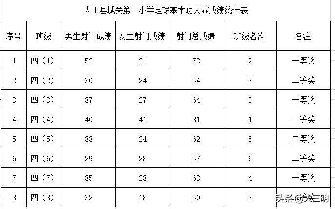 此次比赛内容包括:射门、绕杆运球两个项目,主要考核学生的“停、传、带、射”等技术的基本功。比赛分四、五年级男女组进行,分别计算最好成绩和团体成绩。