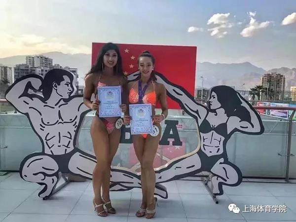 图说:陈姝颖参加2018全国健美锦标赛(右) 来源/上海体育学院官微(下同)