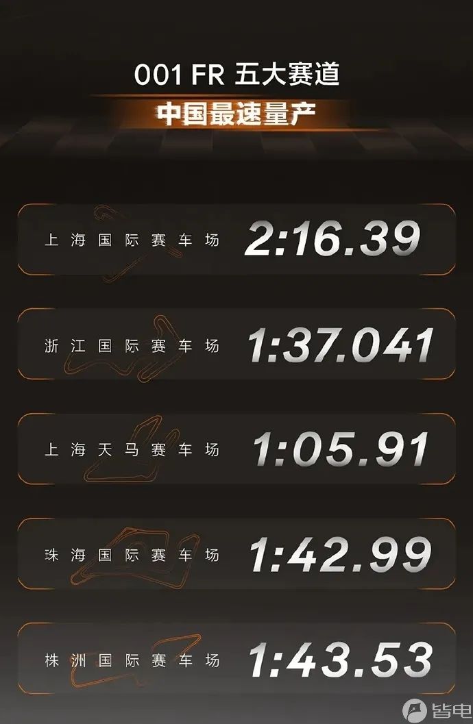 同时,极氪001 FR也成为了株洲国际赛车场、珠海国际赛车场、上海天马赛车场、浙江国际赛车场和上海国际赛车场共 5 条赛道的中国最速量产车。
