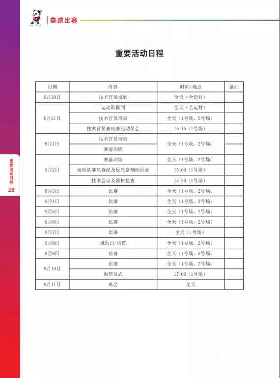 垒球竞赛日程