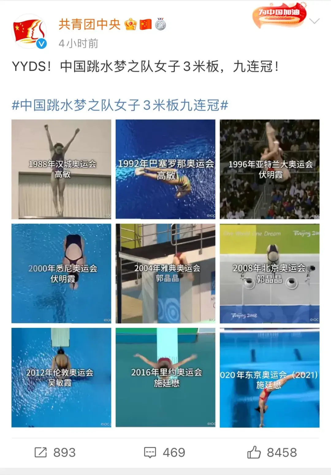 从1988年到2021年,整整9届奥运会,中国跳水队从没让别国的国旗,在我们的国旗之上飘扬过。