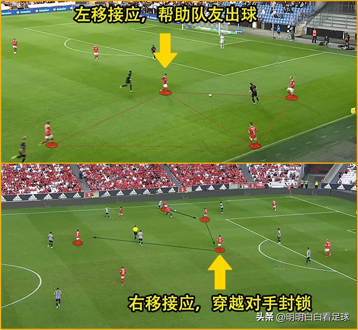 而当队友遇到围抢、出球困难时,他会横向移动,去帮助队友。