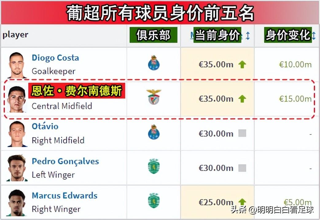 才踢了几个月,目前身价已经达到了3500万,葡超第一(并列),而且还在快速增长中。