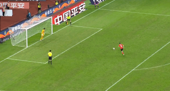 在加时赛中,莫雷诺两次进球因越位被吹掉,杨旭又在最后时刻打丢绝杀进球,双方进入点球大战。