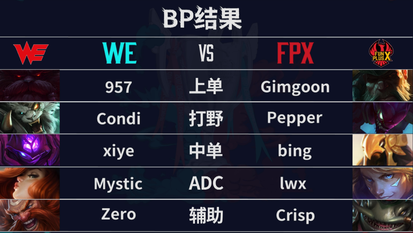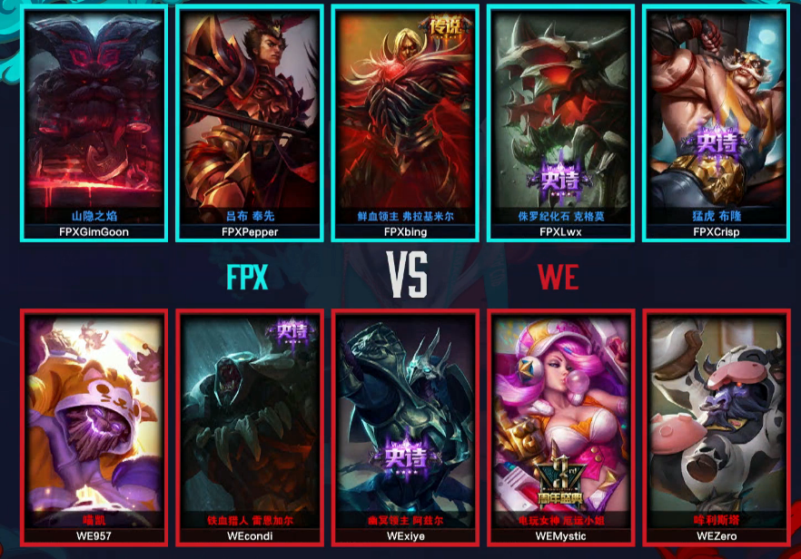 新生的FPX对阵老牌劲旅WE,更换了教练组的WE首次亮相。