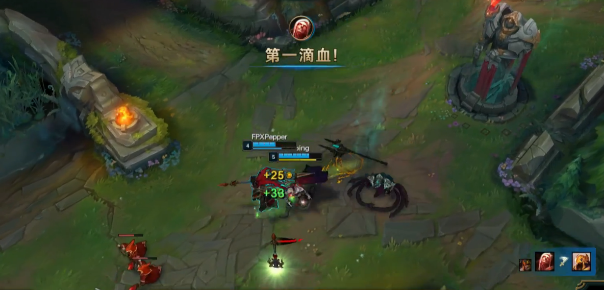 岩雀支援上路,青钢影拿到一血