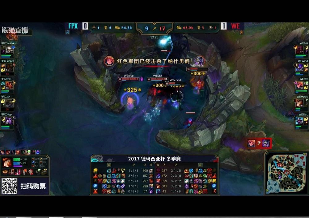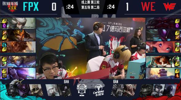 击杀FPX三人之后,WE一波拿下比赛。恭喜WE 2:1取胜