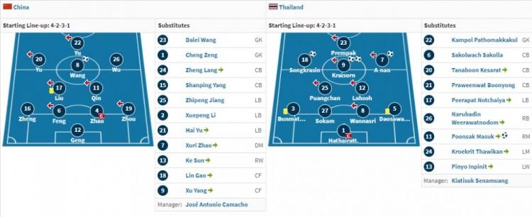 2013年6月15日国足1-5泰国,国足出场阵容如下↓