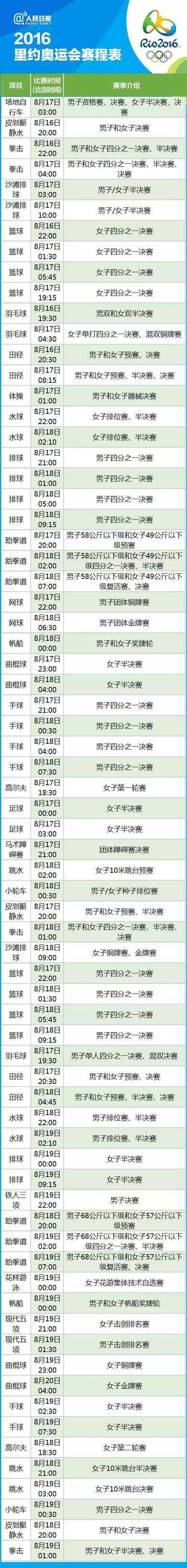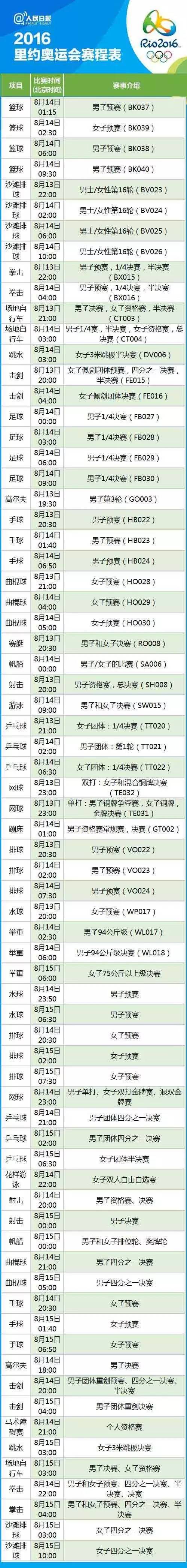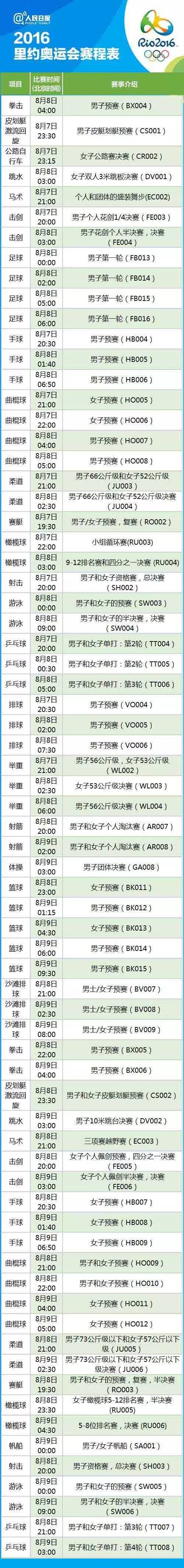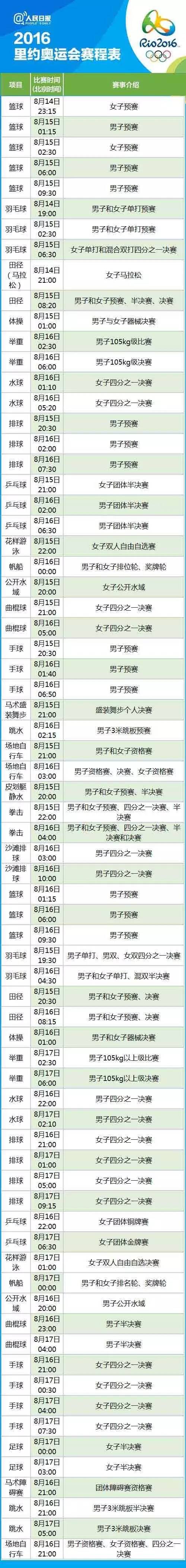 还有超多精彩赛事!提前存好里约奥运会赛程表↓42个分项,306个小项,643场比赛的具体时间,通通在这里!这个夏天,一起看奥运!