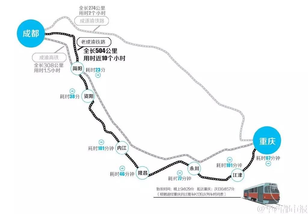 26日左右,成渝高铁将开通。随着这样的变迁,新中国的第一条铁路—老成渝铁路将退居幕后。近日,记者搭乘K853,体验风光一时的老成渝铁路。火车上,有车厢空无一人,硬座变成了卧铺,乘客多为沿途的果农、菜农。