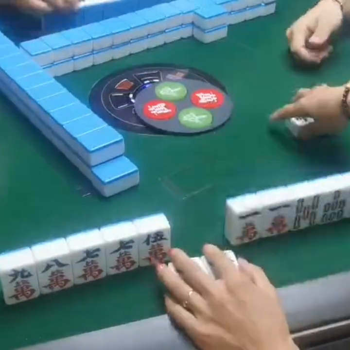 首先,这是一副双色定缺的牌,两家都缺两两加缺条。起手牌非常整齐,两家都缺万,为我们做万清提供了便利。很快就碰出了两对。碰出万清后,进入了两上停的状态,自己的手牌进展迅速。