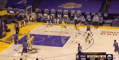 湖人把分差拉到10分以内之后,太阳又一次打出一波5-0将分差拉开到15分。