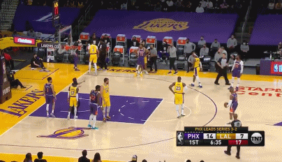 第二节比赛湖人依旧没能进入状态,太阳内突外投很快将领先优势拉开到20分以上。此后波普及时站出来连得8分也无济于事,布克和保罗的火热手感无人能挡,太阳以62-41领先21分结束半场。
