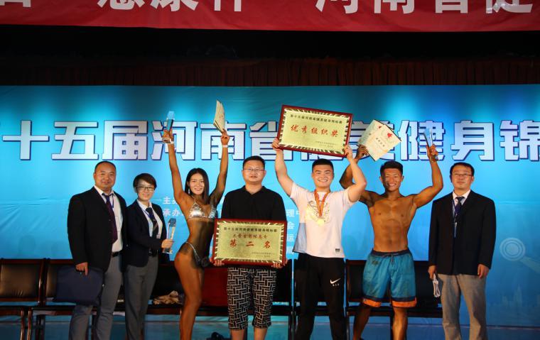经过两个多小时的激烈决赛。最终,来自五花肉中心战队的王华和个人参赛选手应鑫龙分别夺得男子传统健美组和男子古典健美组的全场冠军大奖;来自驻马店冠博健身的蓸再皓、董盟范琳分别获得男子古典健美“最佳肌肉奖”、男了健身“最佳风度奖”和女子形体“最佳气质奖”,焦作林瑶369健身学院的杨文杰、孟小宇、赵婉羽分别夺得健身先生“最佳表演奖”、男子健身模特、女子健身模特“健身名模奖”,魔族健身学院代表队陈丽萍获女子健体“最佳形体奖”,毋峰健美队王萍萍获健身小姐“最佳表演奖”,五花肉中心战队王璐获女子比基尼健身“最佳风采奖”;焦作林瑶369健身学院、五花肉中心战队、驻马店冠博健身三支代表队以出色的战绩分别夺得社会组团体总分一、二、三名;河南机电职业学院、郑州工商学院、中原工学院分别获得大学组团体总分一、二、三名;比赛还评选了体育道德风尚奖、优秀组织奖和优秀教练员,驻马店冠博健身有限公司、教练员武海军等单位和个人获得了以上荣誉。