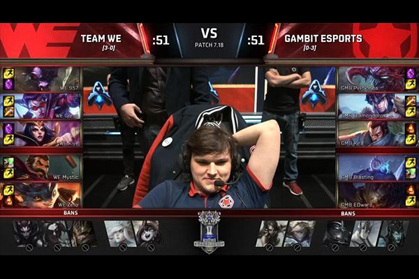 最后一场GMB对阵WE的比赛中,输赢都不会对两队造成任何影响。自然的,两支队伍开始各种秀了!ADC玩薇恩、中单亚索、打野男枪。各种奇葩英雄轮番登场,引得粉丝阵阵欢呼!