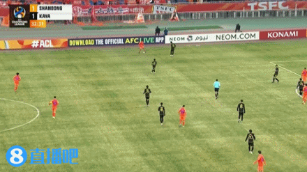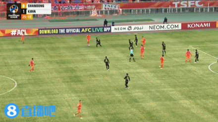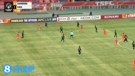 伤停补时3分钟。上半场比赛结束,山东泰山1-1卡雅。