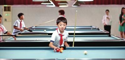 在区教育局的大力支持下,还投资改建唐镇中心小学1000多平方米的体育场馆,创办了全国第一家以小学为单位的台球培训中心。