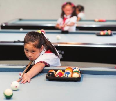 一名小女孩在练习打台球。图片来源:浦东时报 刘思弘