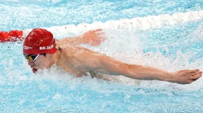 当地时间8月4日,中国队选手孙佳俊(蝶泳)在比赛中。新华社记者 王毓国 摄