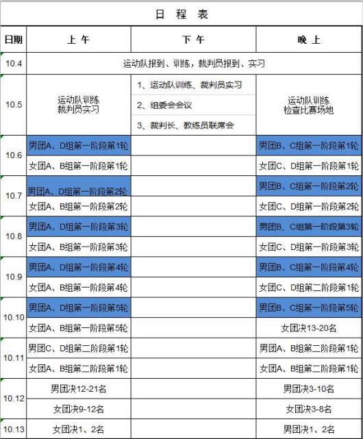 比赛开始时间分别为: 上午9:00、下午14:00、晚上18:30,具体详情请看日程安排表。