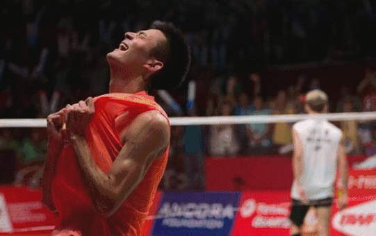 昨晚的比赛中,林丹不到半小时即连取两局获胜。