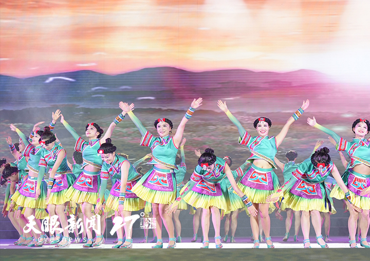 广场舞《阿西里西》根据毕节彝族民歌改编而成,以毕节本地彝族的节庆活动习俗为特点,提炼出具有特色的弹乐琴、吹口弦、齐跳圆圈等经典动作,展现了彝族人民对美好生活的向往与追求。舞台上,40位20多岁的舞者身着盛装,以舒展的身姿展示彝族人民的内心喜悦。