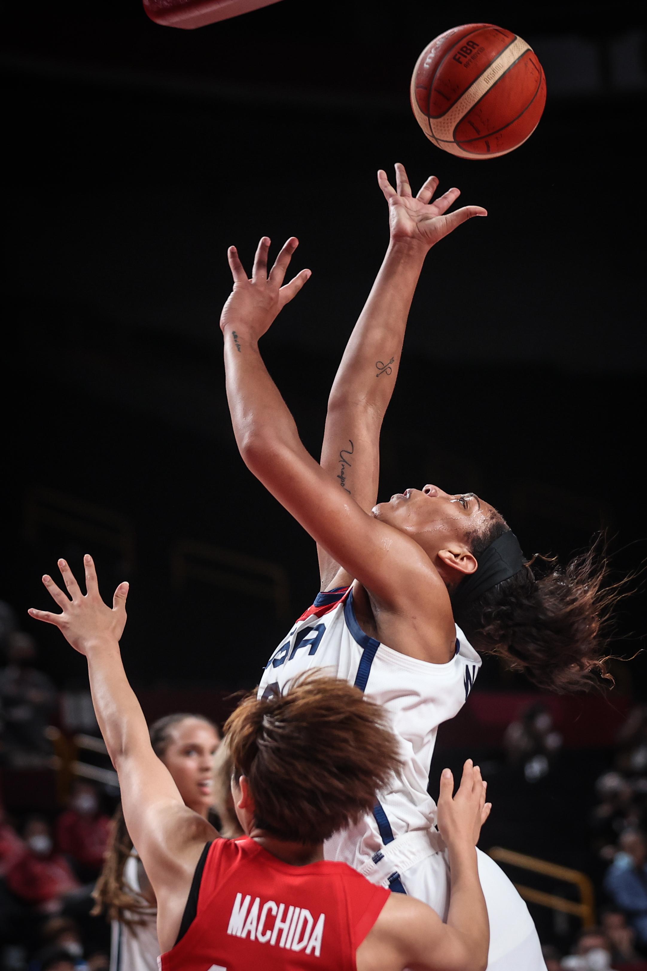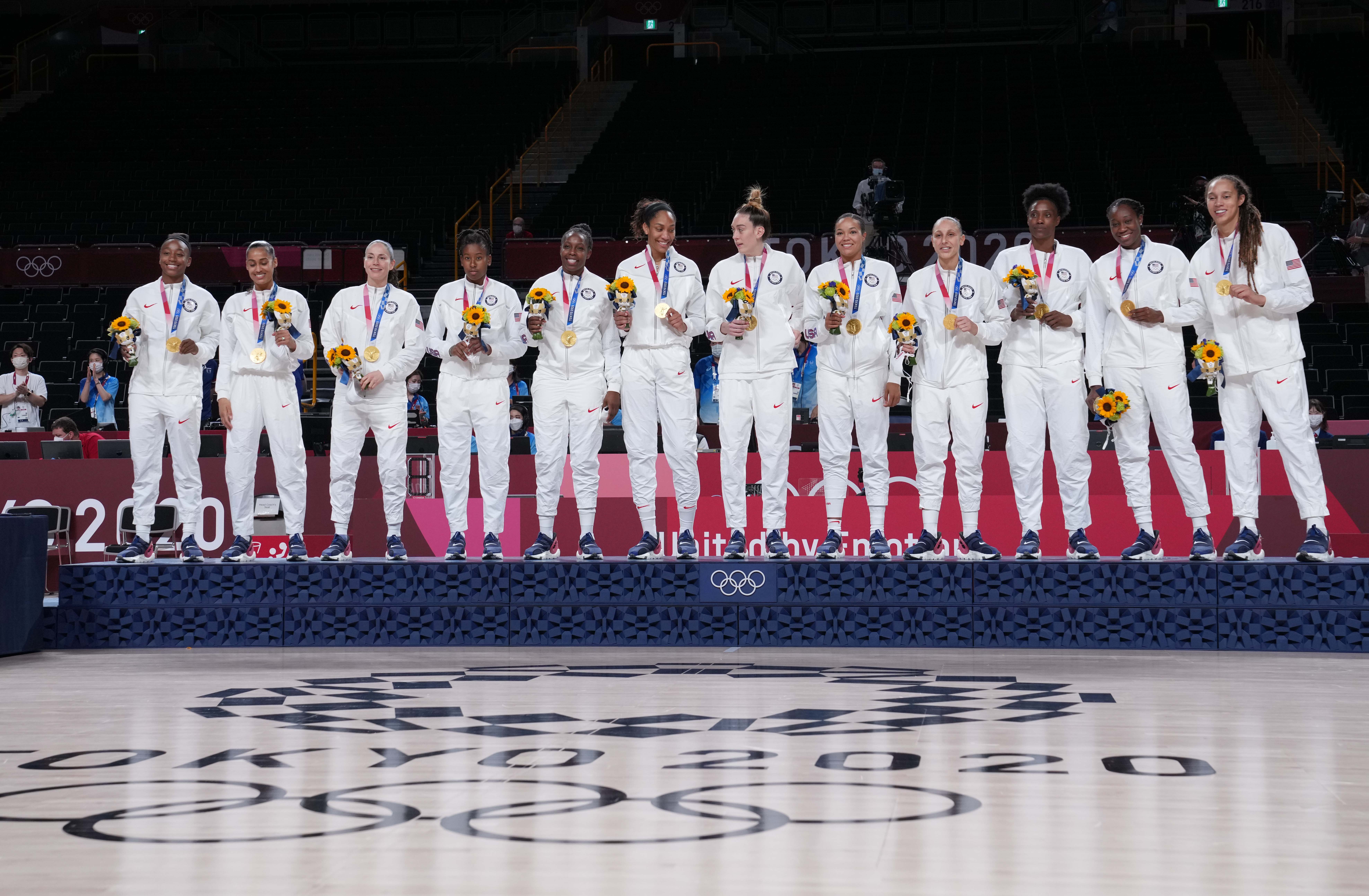 当日,在东京奥运会女子篮球决赛中,美国队战胜日本队,夺得冠军。