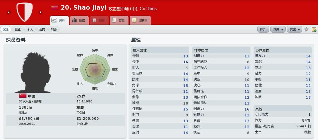 科特布斯官网在欢迎词中打趣道:“今后的日子里,我们的球迷再也不会为当年的那脚精彩任意球而心碎了”,06/07赛季,邵佳一代表科特布斯各项赛事出战30次攻入2球送出3次助攻,并帮助球队成功保级。