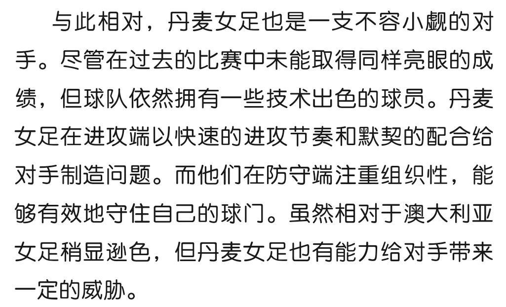 丹麦vs澳大利亚 比赛前瞻看点分析: