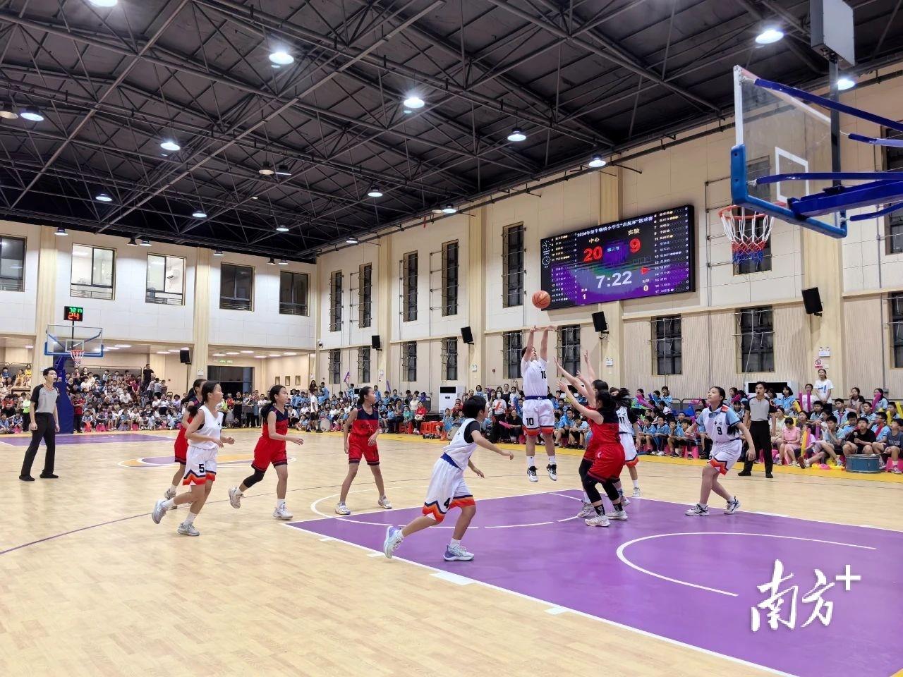 队员们勇往直前、密切配合,带球过人、转身投篮、冲抢篮板、掩护挡拆等精彩动作,展现出了望牛墩镇小学生们高超技艺和勇往直前、顽强拼搏的精神,赢得了现场观众的阵阵呐喊和喝彩。