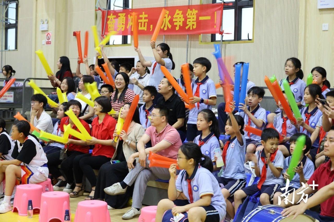 比赛当晚,望牛墩镇实验小学篮球场座无虚席、热闹非凡。