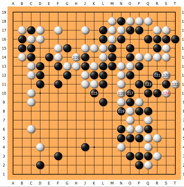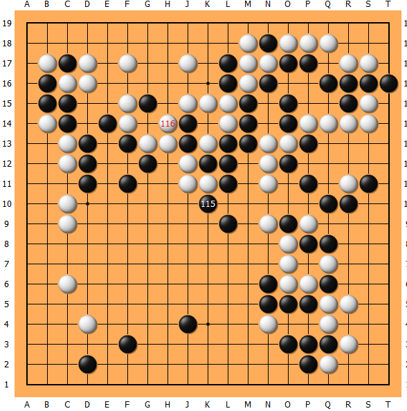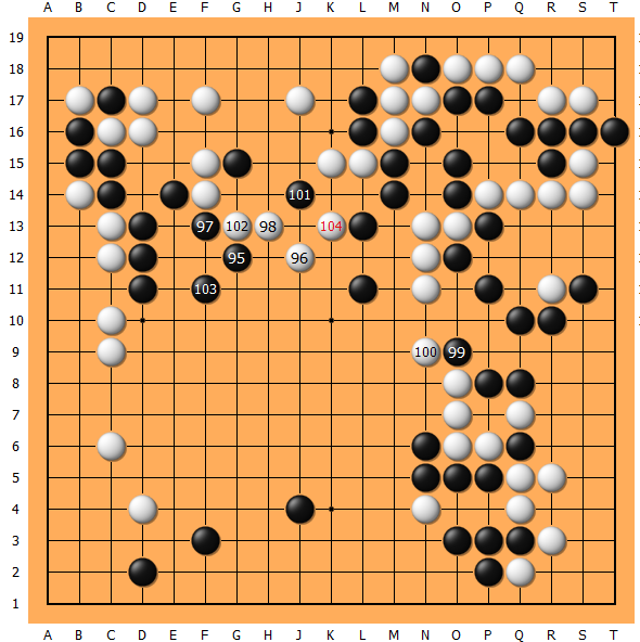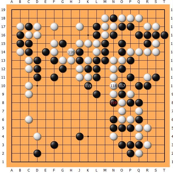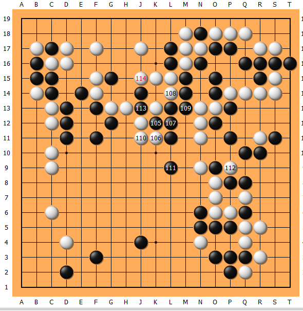 105、111不得不处理上边,下到114黑毫无收获。