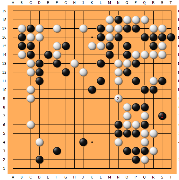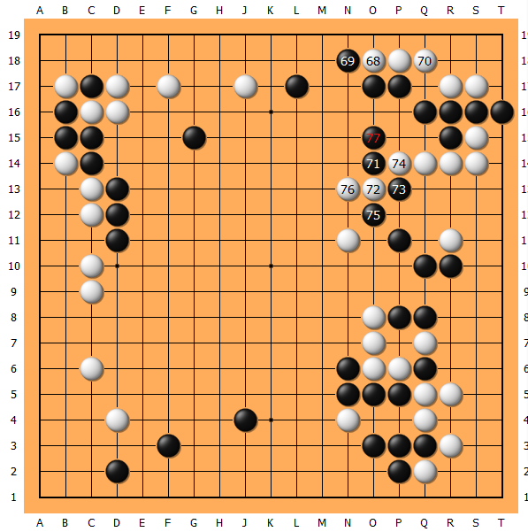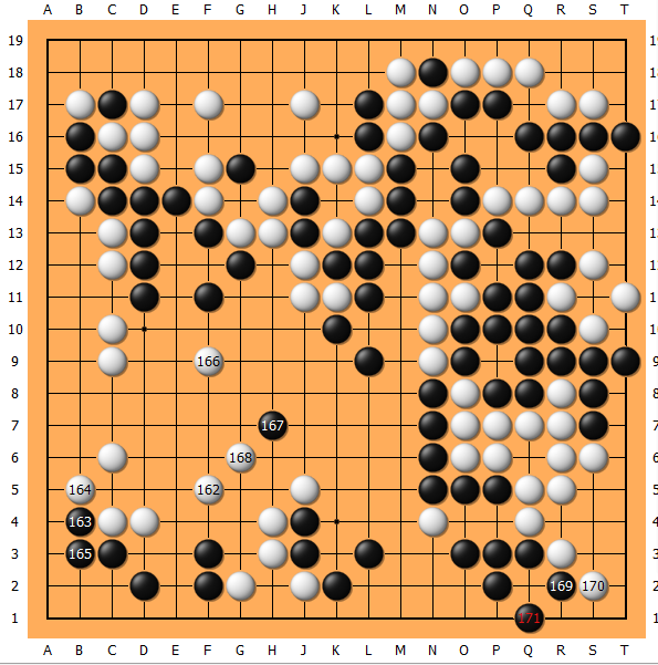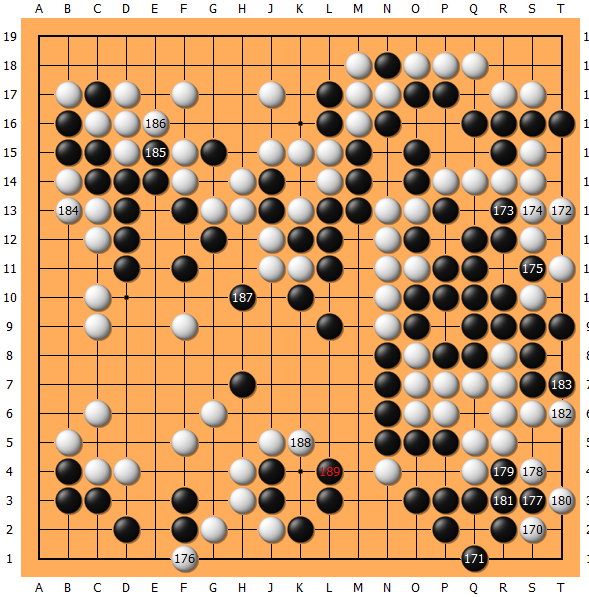 在时间的催促下,173铸成大错!右上凭空多了个劫,黑已危矣!过程中177只能拼的凶一些了!