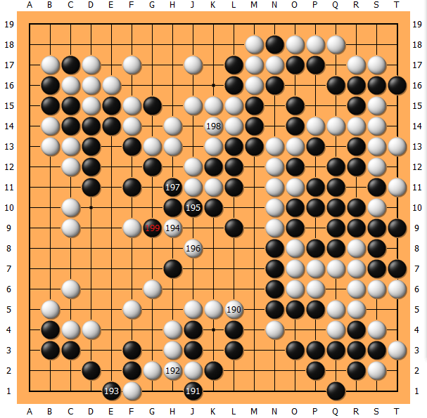 193实在太大,194/196可能是白棋的伏笔。此时不转换我也没招了,199应声而出。