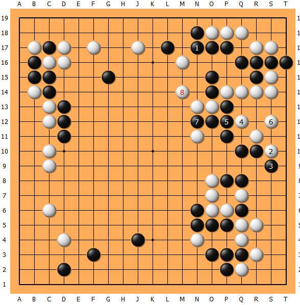 要的就是黑棋屈服的feel,白棋右边再顺利做活后回到上方8位小尖,黑苦战。