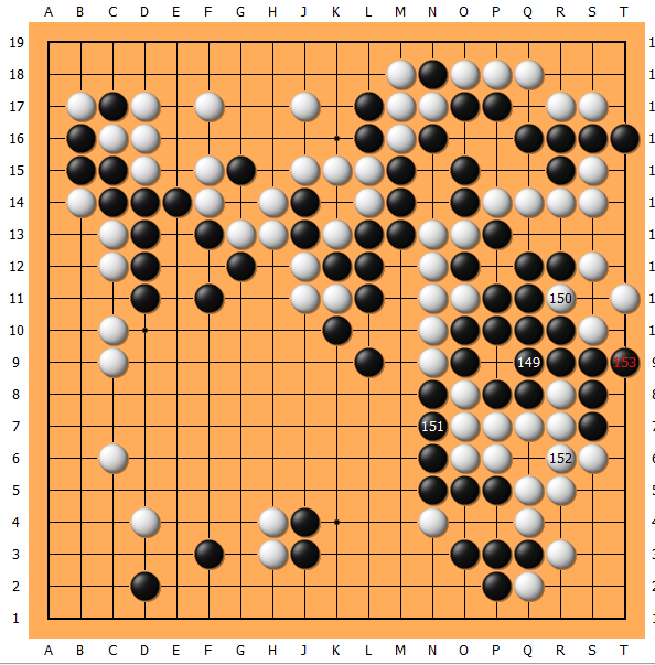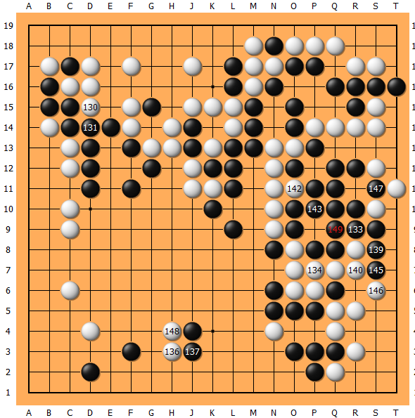 148时我已不能再应,149果断消劫,逐渐进入后半盘的角逐。