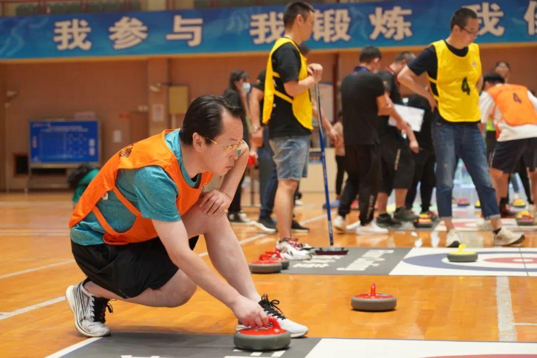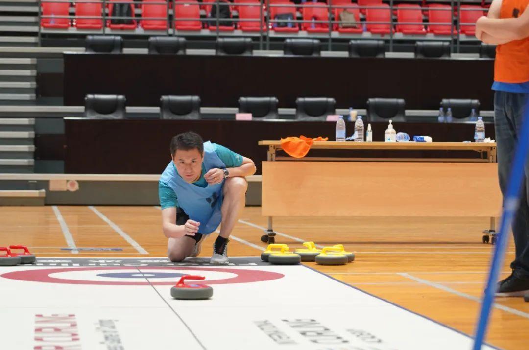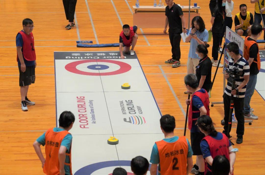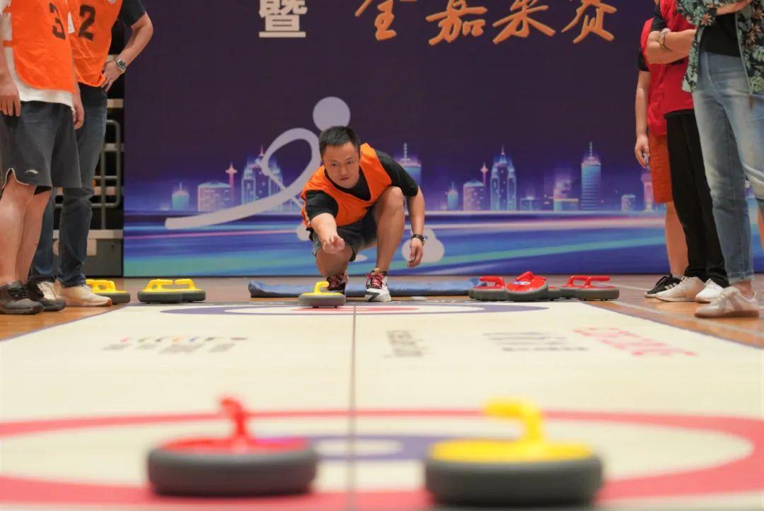 “中了!”比赛现场,投掷冰壶的选手下蹲、瞄准,将冰壶推向前方的得分圈中,一旁的队友大声喝彩。