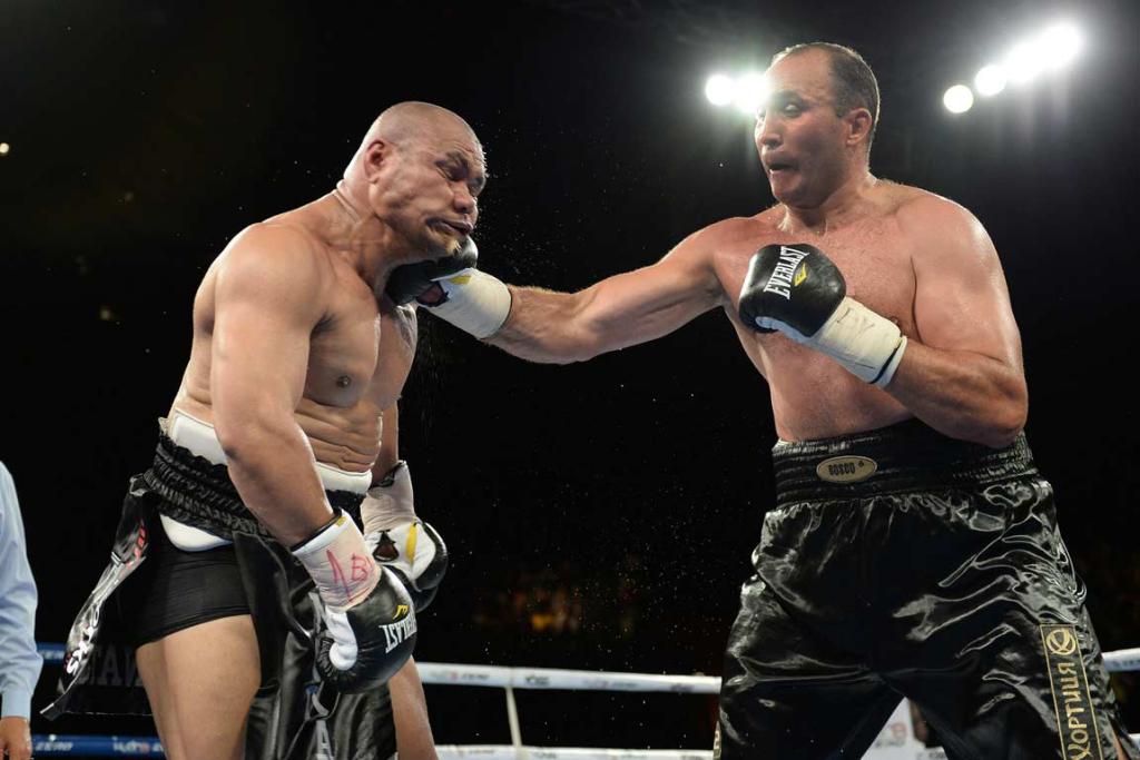 到了2013年,已经41岁的图阿还没有死心,他还想要再试一试,他的目标就是挑战当时的重量级第一人小克里琴科,在推广人的运作下,他与俄罗斯的巨人拳手乌斯蒂诺夫争夺WBA洲际头衔。