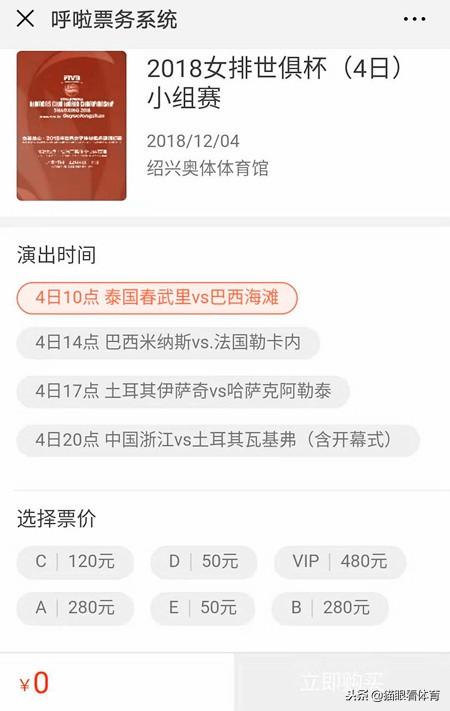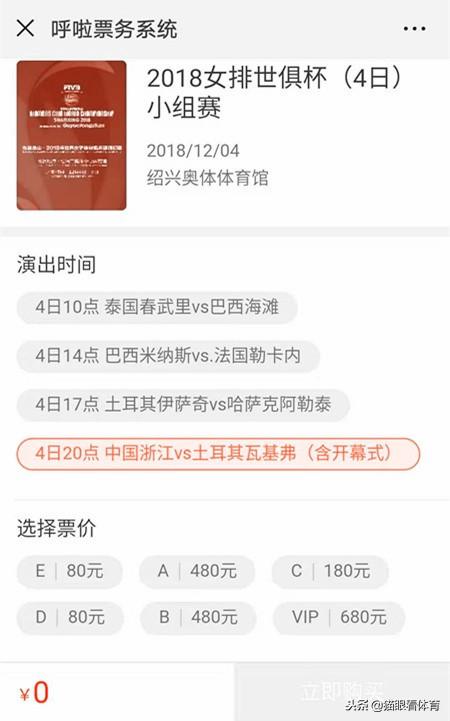 小组赛将于4,5,7日三天举行,每天四场比赛。票价最低50元(逢浙江队比赛最低80),最高的VIP价格680元,一张票只能看一场比赛 ,如果想要一天看满四场比赛,则最低需要230元,没有可以看多场的联票。