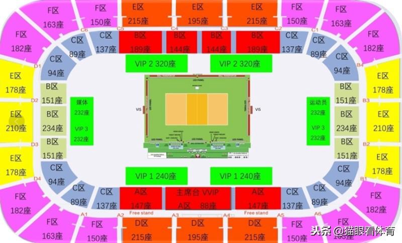 票价最低的座位在D区和E区,D区位置还不错,在主席台后边,但E区的位置有可能在球场两端。