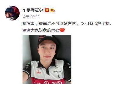 7月4日凌晨,周冠宇通过个人社交媒体向大家报了平安。
