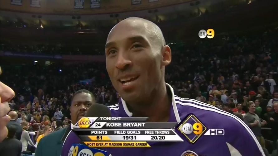 科比出场的37分钟时间里,31投19中,其中三分球6投3中,罚球20投20中。科比得到的61分,既超越了“飞人”乔丹于1995年3月在这座球场代表公牛队比赛时得到的55分,同时也超过了贝尔纳德·金于1984年圣诞节当天创造的60分的该球场最高得分纪录。由于科比的神勇表现,比赛伊始还不断报以嘘声的主场球迷在后半段开始倒戈,齐声把NBA赛场上最高荣誉的喝彩——“MVP”送给科比。