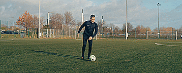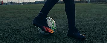 训练这个技巧非常简单,第一步就是把弱势脚放在球前,然后挥动惯用脚从身后触球到另一个方向。