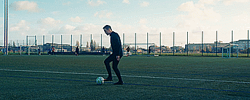 最后一个技巧是我们将学习假射配合脚外侧触球转身,这个技巧在我们带球朝向防守队员时非常有用,我们可以转身快速把他突破。这个突然脚外侧转身配合假射动作可以让防守队员身体倾向一侧,然后我们向另一个方向摆脱。