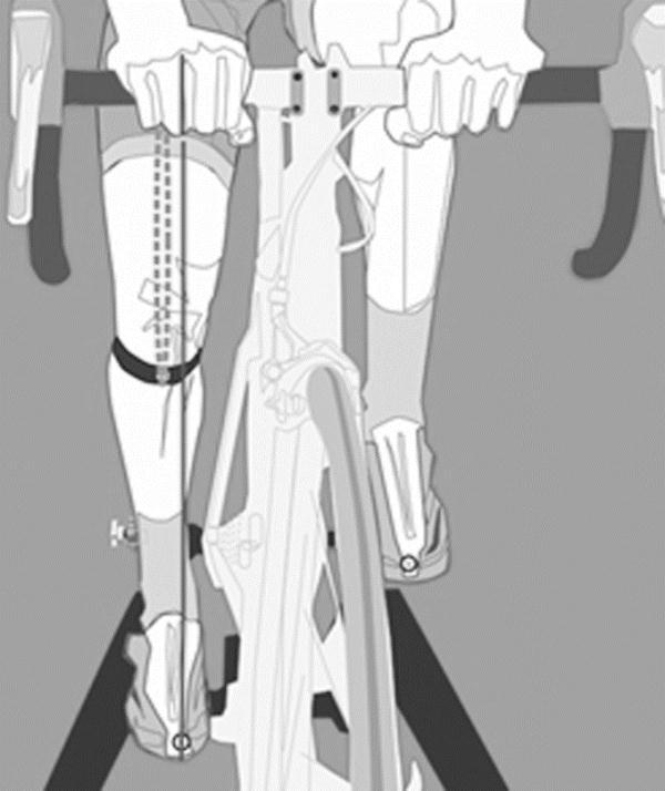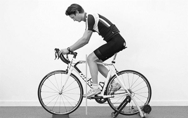 要检查这个的话,就把踏板保持在水平位置,从膝关节中心开始的铅垂线应该刚好垂直于轴中心或者在轴中心的后面。如果膝盖在踏板的轴中心前面的话,会使骑行者的膝盖偏离正确的位置。